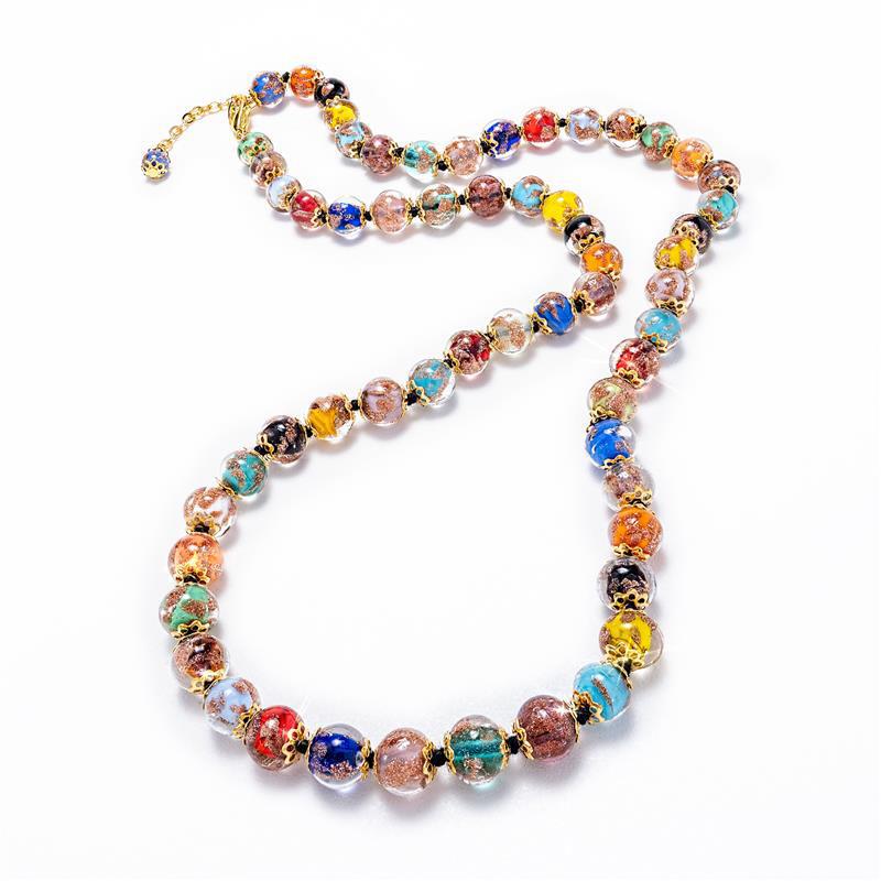 Our Cornaro Necklace is the essence of Venice, with the revelry of the Regata channeled into one perfect piece of jewelry. The array of colors recalls the Regata itself, and the authentic Murano glass is as historic and charming as the gondolas of Venice.