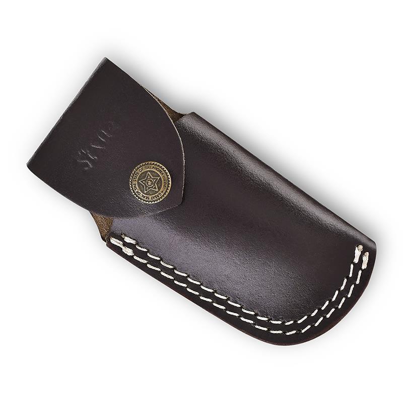 The Damascus Curva Knife celebrates those legendary blades. It uses modern Damascus steel, with the same rippled texture pattern on the blade, to create a curved folding knife that’s 7-1/2" in total length. With a liner lock mechanism, which allows the knife to be opened and closed using just one hand, and a decorative handle made of buffalo horn and colored bone, this knife is a trophy for any hunter or collector.