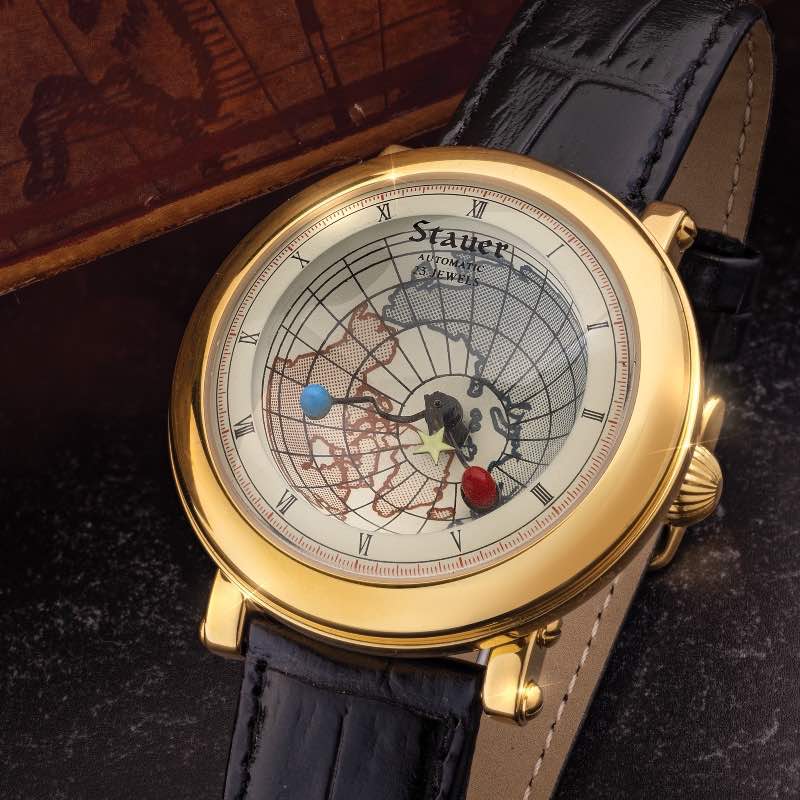 Our chief watch designer stated he would like to design a very unique watch. He suggested a large number of our clientele were “men of the world” and should have a timepiece that reflected as much. He then unveiled drawings that put the world on a watch. We not only felt that it was impossible to manufacture, we thought he was nuts. He certainly fooled us!
